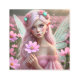 Un hermoso hada de cabello rosa con las alas brillantes vestidas con un vestido rosa bonito y joyas opales sostiene un solo cosmos mientras se está en un campo de cosmos.