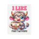 A funny, sarcastic, and colorful design showcases an adorable highland cow holding a steaming cup of coffee. The cow, with big blue eyes and a playful wink, has gray fur. Vibrant text reads, "I like coffee more than people." This charming design is available on various products, making it a perfect gift for coffee lover.