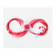 Símbolo infinito de flujo continuo de vino tinto vertiendo en vidrio de vidrio sobre fondo blanco.