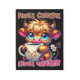 A funny and sarcastic design showcases a cute highland cow with big blue eyes, sitting contentedly in front of a vibrant daisy while holding a steaming cup of black coffee. The cow's soft brown fur adds to its charm. Bright, colorful text reads, "Inhale caffeine, exhale negativity." This delightful design is available on a variety of products, making perfect gifts for coffee enthusiasts.