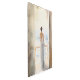 Esta obra de arte serena y evocadora acuarela captura un momento de contemplación tranquila. Una joven, elegante con un largo vestido blanco, se levanta en un balcón, perdida la vista en la vasta extensión del lago que se extiende delante de ella. La escena evoca una sensación de paz, anhelo, o tal vez esperanzadora anticipación, mientras mira hacia el horizonte lejano. La técnica de acuarela suave y fluida realza la atmósfera suave, el juego de luz en el agua y el elegante vestido de su vestido. Una pieza atemporal que aporta un ambiente apacible y con aspiraciones a cualquier espacio.