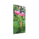 Usted puede añadir un chapoteo del color en cualquier pared con esta impresión metalizado que ofrezca un lagarto verde del anole camuflado en las hojas debajo de una flor rosada hermosa del hibisco. ©Patricia AZ Phillips de la fotografía.