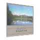 Un colorido ilustracion digital del Monte Rainier, el paisaje circundante y el cielo azul que se refleja en las aguas residuales de un lago. La obra de arte tiene un borde gris. Debajo de la imagen está el título: Parque Nacional Bench Lake Mount Rainier, Washington, dentro de una frontera y en el mismo color gris. Derechos reservados ©2019 Kimberly J Tilley.