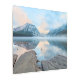 Una serena fotografía paisajística captura un tranquilo lago Tenaya, Yosemite, enclavado en medio de las montañas de Sierra al amanecer. La superficie del agua refleja el cielo, creando un efecto similar al de un espejo. Una suave bruma cuelga sobre el lago, añadiendo un ambiente etéreo.