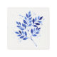 The artwork is described as a watercolor painting of blue leaves and branches with a textural effect.