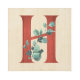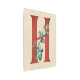 Impresión metalizado diseñada para una decoración moderna de estilo rústico y campestre, esta carta ilustrada/inicial presenta un fondo de madera clara con la letra H rellena de madera roja granulada, acentuada por un tallo acuarela de hojas de eucalipto.