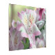 Esta impresión de 30" x 20" muestra una imagen de flores alstromeresas rosas y blancas, también conocidas como lirios peruanos o lirios de los incas. La impresión es un estilo contemporáneo hecho de aluminio grueso de 0.045" con un acabado brillante y esquinas redondeadas. Ha sido preequipado con un marco de montaje, alambre colgante y un gancho de pared, por lo que está listo para mostrarse a su llegada. Siéntase libre de contactarme a través de Zazzle si tiene preguntas sobre esta impresión o le gustaría ayudar a transferir esta imagen a una impresión de diferente tamaño o a un elemento totalmente diferente. Me complace ayudar a asegurar que la imagen encaja correctamente.