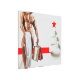 Navidades de SlipperyJoe comprando un árbol de espirales de papel blanco coronado por una vibrante estrella roja que golpea el tema de las vacaciones atrevida banda de escarlata corriendo horizontalmente sexy hombre muscular de pecho parcialmente vestido hoja de cama artística sin camisa regalo de tipo bolsos de compras estacionales regalos de orgullo gay alegrías LGBTQIA