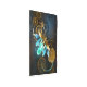 luciérnagas de vapor con alas transparentes azules y bombilla verde sobre fondo gastado, marrón y texturado. Estilo Steampunk.