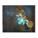 luciérnagas de vapor con alas transparentes azules y bombilla verde sobre fondo gastado, marrón y texturado. Estilo Steampunk.