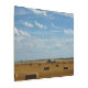 Un granjero está trabajando en sus campos, haciendo balas de heno.