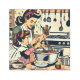 Una escena retro con una madre enseñándole a su hija cómo hacer un pastel no en un estilo de arte pop de historietas vintage.