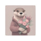 Reservados todos los derechos © Angelandspot Una nutria adorable contiene un ramo de flores