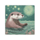 Una nutria en el océano al estilo de Van Gogh con algunas flores polvorientas de rosa en las esquinas