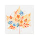 The image shows a watercolor illustration of a maple leaf, decorated with flowers and butterflies.