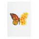 Naranja, mariposa monarca detallada con ala decorada con amapola californiana amarilla y vibrante sobre fondo blanco.