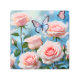 Hermosa y apacible planta suave rosa rosa rosa de flores con mariposa azul transparente