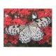 mariposa apoyada en un grupo de flores rojas vibrantes