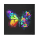 Arcoiris, mariposa monarca luminosa, pintada de forma artística con ramo de iridiscente, rosas brillantes y luminiscentes sobre fondo negro. Mariposa arcoiris.