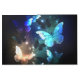 Fabuloso, brillante, azul y amarillo, mariposa nocturna sobre fondo oscuro.