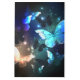 Fabuloso, brillante, azul y amarillo, mariposa nocturna sobre fondo oscuro.