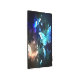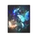 Fabuloso, brillante, azul y amarillo, mariposa nocturna sobre fondo oscuro.