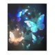 Fabuloso, brillante, azul y amarillo, mariposa nocturna sobre fondo oscuro.
