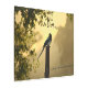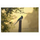 Un hombre parlanchín se sienta en un puesto de cerca de viñedos en la hora dorada.