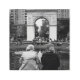 Foto en blanco y negro de dos mujeres musulmanas en la fuente del Washington Square Park, celebrando la conexión humana y el vibrante crisol de culturas de Nueva York
