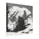 Fotografía en blanco y negro del Monte Rainier cubierta de nieve. Hay piedra a la vista. El hielo y la nieve del volcán se están derritiendo. Algunos árboles atraviesan el paisaje accidentado. Derechos reservados ©2023 Kimberly J Tilley. zazzle.com/store/developingnature
