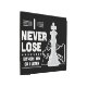 Stay one move ahead with this inspiring chess quote Metal Wall Art: “I never lose — either I win or I learn.” Great motivational home decor and wall art for every chess player.