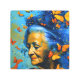 Impresión En Metal Mujer Anciana Con Mariposas