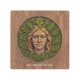 Una mujer verde tallada en madera con pintura aplicada a las hojas de roble y el pelo. Personalizar agregando su propio texto. El Hombre Verde/Hombre Salvaje, también conocido como cabeza foliada, es un motivo en arquitectura y arte, una cara compuesta, o completamente rodeada, por follaje, que se extiende a menudo desde el centro de la cara. Además de una función puramente decorativa, el Hombre Verde se interpreta como un símbolo de renacimiento, representando el ciclo de nuevo crecimiento que ocurre cada primavera. Encontrado en muchas culturas de muchas edades alrededor del mundo, el Hombre Verde está a menudo relacionado con deidades de vegetación natural. El equivalente femenino del Hombre Verde es a menudo referido como la Mujer Verde o la Sheela-Na-Gig. Estas figuras, a menudo representadas con una corona arbolada o un pelo lujoso, simbolizando su conexión con el mundo natural, están asociadas con la fertilidad, la naturaleza y la naturaleza salvaje. En algunos contextos, la "Mujer salvaje" o la "Glaistig" (un tipo de espíritu marino en el folclore escocés) también pueden considerarse equivalentes femeninos del Hombre Verde, que representan diferentes aspectos de la naturaleza y el poder de la naturaleza.