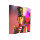 Navidades soldado de juguete figurina SlipperyJoe orgullo gay regalos LGBTQIA coloridas luces de bokeh fondo vibrante chaqueta roja uniforme de oro botones de hombro peatones caricatura rostro artístico gorra negro oro emblema rosa púrpura amarillo ambiente festivo