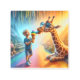 Joven con una jirafa usando gafas y lamiendo el cono de helado de los chicos.