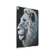 Ai art retrata a un león blanco y negro en una noche mística con un fondo estrellado.