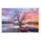 Una serena pintura paisajística con un majestuoso árbol, aguas calmadas y dos botes nos invita a abrazar cada día como una nueva oportunidad para el crecimiento y la renovación.