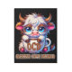A funny and sarcastic colorful design showcases an adorable highland cow sitting with a steaming coffee mug labeled "O C D." The cow, with big blue eyes, glasses, and a concerned expression, sports brown and white fur. The vibrant text reads, "Obsessive Coffee Disorder." This quirky design is available on a wide range of products, making perfect gifts for coffee enthusiasts.