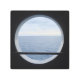 Enseguida después del amanecer, en qué promesas es una vista de ser un día agradable en el mar, de los azules y de los blancos del cielo y del océano a través de la porta de una visión clasifique el barco de cruceros.