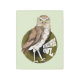 Un lindo ilustracion de una lechuza o choque en llamas. Esta lechuza vive en ruinas en el suelo. El búho tiene piernas largas y ojos amarillos brillantes. Un diseño de pájaro para cualquiera que ame a los búhos.