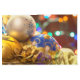 Una captura de pantalla muestra una colección de adornos navideños en una cesta de alambre. Los adornos están decorados con diferentes motivos, como ángeles con halos, motivos florales y acentos purpurinas. La paleta de colores incluye oro, azul, plata y amarillo. Como telón de fondo, las luces borrosas de los Navidades crean un ambiente festivo. El ambiente general es cálido y festivo.