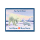 Presenta una pintura digital de un cachorro de oso polar que busca tranquilidad a su madre en el paquete de hielo del Ártico. También aparece el eslogan "Cold Noses (A red heart) Warm Hearts".
