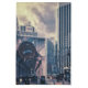 La imagen capta una vista a nivel de calle en San Francisco, mostrando la entrada al Banco de la Reserva Federal. La entrada del edificio está delimitada por una estructura arcaica distintiva con un signo circular. Los rascacielos altos dominan el fondo, creando una sensación de densidad urbana. El cielo está nublado, arrojando una luz apagada sobre la escena.