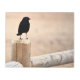 Un pájaro negro se sienta en una cerca de la playa de Guadalupe.