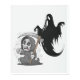 Un ilustracion humorístico de un pañuelo sombrío aterrorizado, huyendo de un fantasma perseguido en el terror.