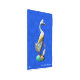 Un pato de madera tallada, pintado, con su pato, fuertemente curtido, sobre un fondo azul. Añade tu propio texto.
