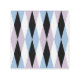 Un diseño inspirado a mediados de siglo, con un patrón de diamante arlequín en azul, lila polvorienta, negro y blanco.