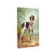 Perro cazador con pájaro en la boca. Dibujo vintage colorido. Recuperador con piel de cazador colorida