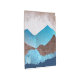 Un hermoso paisaje con texturas únicas que muestran un paisaje de montaña azul con un cielo nublado y tonos de magenta marrón y oscuro.