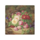 Una hermosa impresión de "Pieza Rosa en el suelo forestal con mariposas, canasta y cinta azul", pintura creada por el pintor alemán Josef Lauer (1818-1881).
